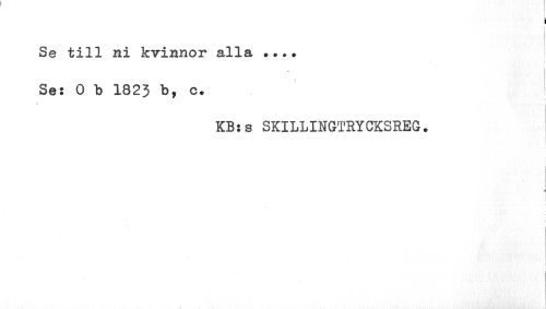//// i //// Se till ni kvinnor alla ... Se: 0 b 1823 b, c. //// KB:s SKILLINGTRYCKSREG. //// 4 //// i //// _ //// I ////