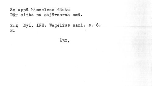 //// Se uppå himmelens fäste Där sitta nu stjärnorna små» //// 2:4 Nyl. INE. Wegelius saml. s. 6. N. //// ÅBO. //// ! ; //// i //// i ! ////