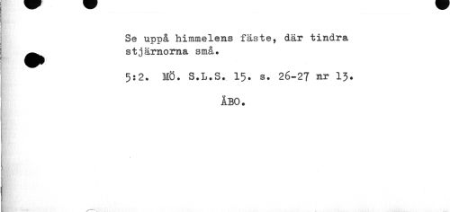 //// Se uppå himmelens fäste, där tindra ^^ stjärnorna små. //// 5:2. MÖ. S.L.S. 15. s. 26-27 nr 13. //// ÅBO. //// t ////