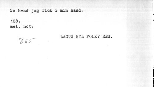 //// Se hvad jag fick i min hand. 408. //// mel. not. //// LAGUS NYL FOLKY REG. //// Ha ! //// • •¦ i //// j //// I ¦ //// ¦ ////