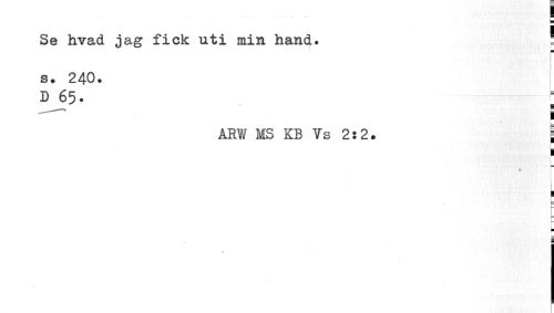 //// F //// ta //// Se hvad jag fick uti min hand. * //// s. 240. //// D 65- //// s //// — i //// ARW MS KB Vs 2:2. j //// i i //// 1 //// t //// 9 ////