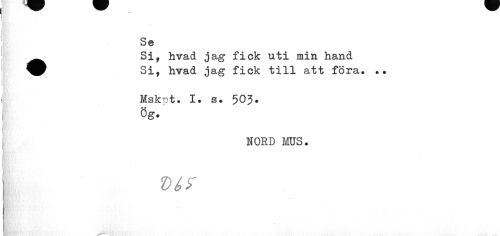 //// Se //// ^^ Si, hvad jag fick uti min hand //// Si, hvad jag fick till att föra. .. //// Mskpt. I. s. 503» Ög. //// NORD MOS. //// Vtsr ////