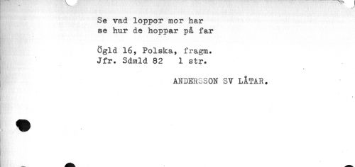 //// Se vad loppor mor har se hur de hoppar på far //// Ögld 16, Polska, fragm. Jfr. Sdmld 82 1 str. //// v //// I //// ANDERSSON SY LÅTAR. //// i ////