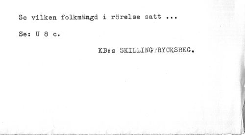 //// Se vilken folkmängd i rörelse satt Se; U 8 c. //// KB:s SKILLINGTRYCKSREG? ////