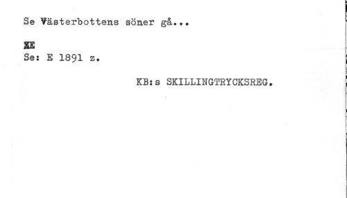 //// Se Västerbottens söner gå... SS //// Se: E 1891 z. //// KB t s SKILLINGTRYCKSREG. j ////