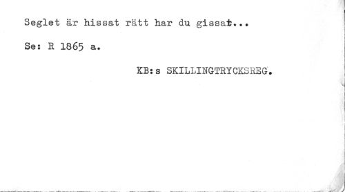 //// Seglet är hissat rätt har du gissat,.• //// i //// i //// j //// Se: R 1865 a. i //// i //// KBs s SKILLINGTRYCKSREG. //// A //// ¦ ////