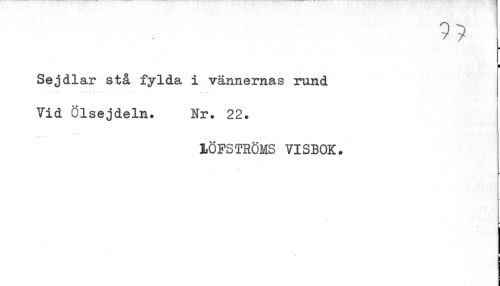 //// ¦ //// I //// Sejdlar stå fylda i vännernas rund //// Vid Ölsejdeln. Hr. 22. //// ¦.. t- //// 1QFSTRÖMS VISBOK. //// \ ////