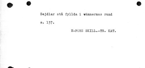 //// Sejdlar stå fyllda i vännernas rund s. 137. //// H-FORS SKILL.-TR. KAT. ////