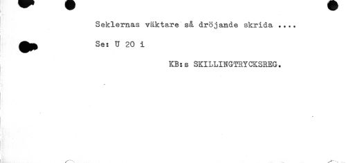 //// Seklernas väktare så dröjande skrida ... Ap Se: U 20 i //// KB:s SKILLINGTRYCKSREG. //// « ////