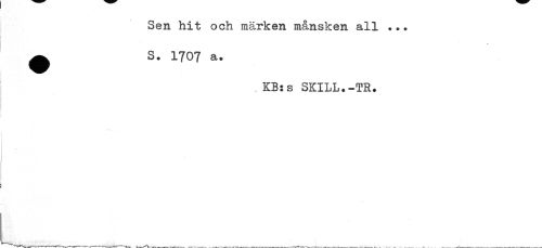//// Sen hit och märken månsken all //// * //// ^ s. 1707 a. //// . KB:s SKILL.-TR. ////