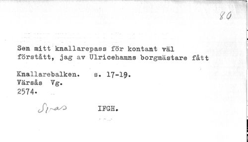 //// ¦ //// V6 //// I //// v //// Sen mitt knallarepass för kontant väl //// förstått, jag av Ulricehamns borgmästare fått //// ¦•• • < //// Kmallarebalken. s. 17-19» Värsås Vg. //// 2574- ... //// IPGH. //// «• I ////
