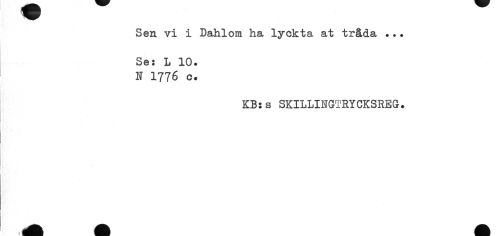 //// Sen vi i Dahlom ha lyckta at tråda ... //// Se: L 10. N 1776 c. //// KB:s SKILLINGTRYCKSREG-. ////