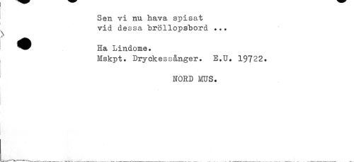 //// Sen vi nu hava spisat vid dessa bröllopshord ... //// N //// ^^ Ha Lindome. //// Mskpt• Dryckessånger. E.U. 19722. //// hord MUS* ////