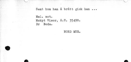 //// Sent kom han å brått gick han ... Mel* not. //// Mskpt Visor, E.U. 35498. Dr Boda. //// HORD MUS. ////