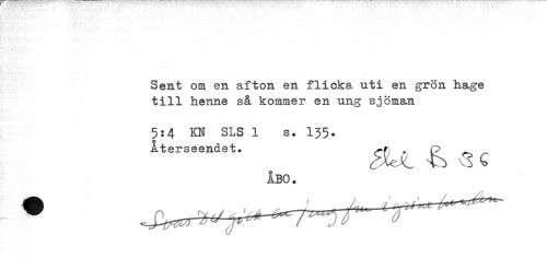 //// Sent om en afton en flicka uti en grön hage till henne så kommer en ung sjöman //// 5:4 KN SLS 1 s • 155. //// Återseendet. w # p //// ÅBO. ////