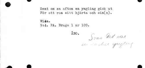 //// Sent om en afton en yngling gick ut För att roa sitt hjärta och sin(n). //// Vida* //// 9:4. PA. Brage 1 nr 109• //// ÅBO. //// \ {j^zso w£Jr ////