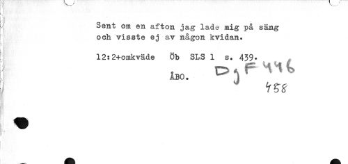 //// i a //// Sent om en afton jag lade mig på säng och visste ej av någon kvidan. //// i* »V» ¦ " //// ¦ //// 12:2+omkväd.e Öb SLS 1 s. 439. //// åbo. ^ ^ \ //// l ////