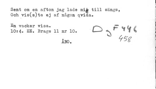 //// I //// Sent om en afton jag lade mi£ till sängs, Och vis(s)te ej af någon q_vida. //// En vacker visa. w (j ä ¦ //// 10:4* EB. Brage 11 nr 10. L~J <1 % \ //// ÅBO. " ! //// I //// 'I ////