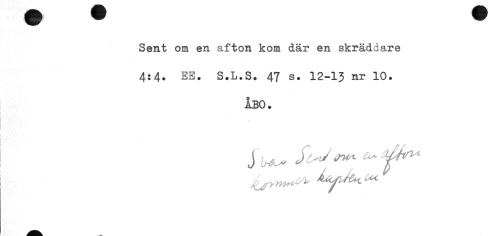 //// Sent om en afton kom där en skräddare 4:4. EB. S.L.S. 47 s. 12-13 nr 10. //// ÅBO. //// tu* ////