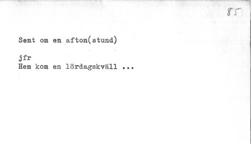 //// fr //// Sent om en afton(stund) //// r- //// jfr //// Hem kom en lördagskväll ... //// t ////