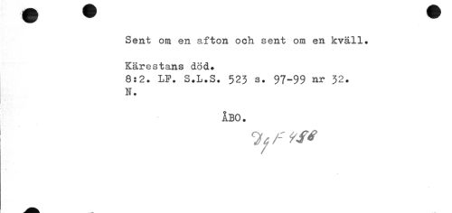 //// jj^å j^k H Hk //// Sent om en afton och sent om en kväll. Kärestans död. //// 8:2. LP. S.L.S. 523 s. 97-99 nr 32. //// N. //// ¦v'' //// ÅBO. //// 1 c /r ////
