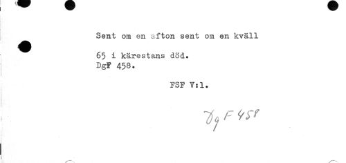 //// Sent om en afton sent om en kväll 65 i kärestans död. //// DgF 458. //// FSF Vsl. //// tyFW //// ^—--v ////