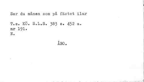 //// I //// Ser du månen som på fästet ilar //// T.s. KÖ. S.L.S. 383 s. 452 a. //// nr 191. [ //// K. //// ÅBO. //// t //// J //// •n ////