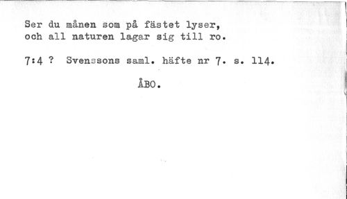 //// Ser du månen som på fästet lyser, och all naturen lagar sig till ro. //// 7:4 ? Svenssons saml. häfte nr 7* s. 114» //// ÅBO. ////