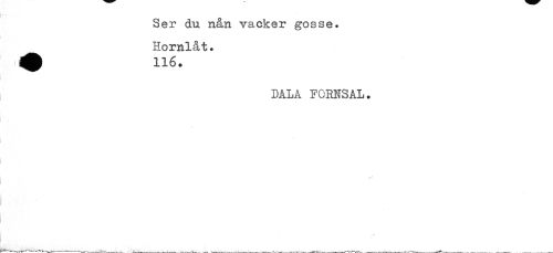//// Ser du nån vacker gosse. //// Hornlåt. 116. //// dala fornsal. ////