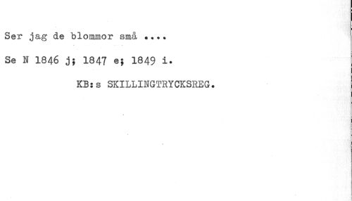 //// Ser jag de blommor små //// v' . . - w //// Se N 1846 3j 1847 e; 1849 i. //// KBs s SKILLINGTRYCESREG. //// % //// I ////