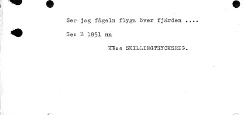 //// t //// Ser jag fågeln flyga över fjärden //// Ses a 1851 nn //// KBss SKILLINGTRYCKSREG. //// ^---v ^---^V ////