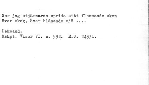 //// 11 //// Ser jag stjärnarna sprida sitt flammande sken över skog, över blånande sjö ... //// Leksand. //// Mskpt. Visor VI. s. 592. E.U. 24331- ////