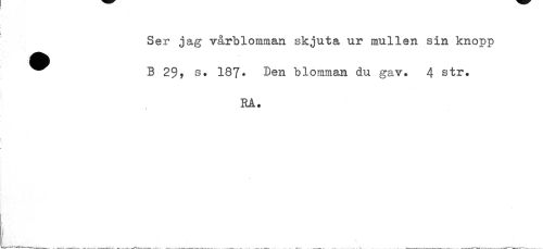 //// Ser jag vårblomman skjuta ur mullen sin knopp ^^ B 29? s. 187* Den blomman du gav. 4 str. //// RA. ////