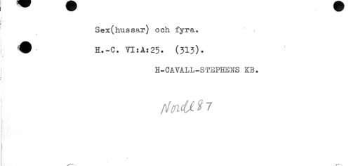 //// Sex(hussar) ooh fyra. s « //// H.-C. 7I:Ås25. (313). //// H-CÅVÅLL-STSPHENS KB. //// tfffltUI 7 ////