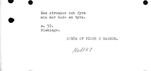 //// Sex strumpor och fyra //// •min mor hade en tyr a» //// s. 52. Blekinge. //// STRÖM SY VISOR 0 RAMSOR. //// /ViJt» 7 //// ^ Q. ___ ////