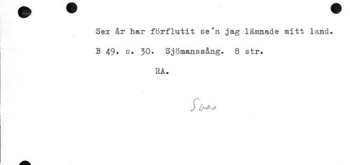 //// Sex år har förflutit se'n jag lämnade mitt land» B 49. s. 30. Sjömanssång. 8 str. //// ra» //// k ////