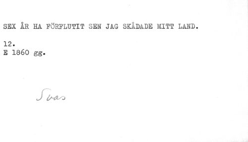 //// SEX ÅR HA FÖRFLUTIT SEN JAG SKÅDADE MITT LAND. 12. //// E 1860 gg. ////