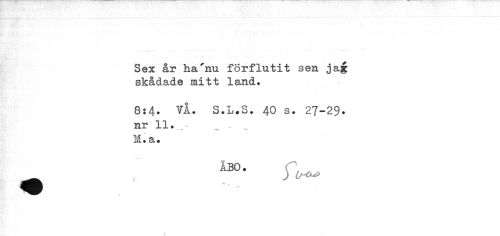 //// i I - — - i //// Sex år ha'nu förflutit sen jag skådade mitt land. //// 8:4. ^i. S.L.S. 40 s. 27-29* //// nr 11. - //// M.a. //// ABO. //// ___i J U++ ////