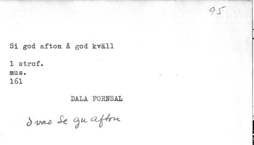 //// ¦ //// Si god afton å god kväll //// 1 strof* mus» 161 //// DALA FOEISAL //// b V** & j ////