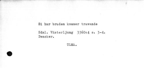//// ¦v-'.- //// % //// Si hur bruden kommer travande //// Sdrnl. Västerljung 3360:4 s« 3-4* Dencker. //// % //// ULMk. ////