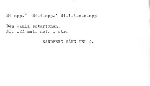 //// Si opp. ' Si-i-opp.' Si-i-i-o-o-opp //// B //// Den gamla sotartonen. Nr. 124 mel. not. 1 str. //// SANDBERG SANG DEL 2. ////