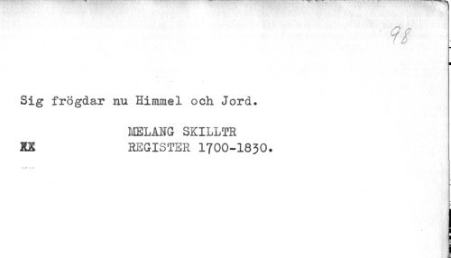 //// ¦ //// I //// Sig frögdar nu Himmel och. Jord. //// MELÅHG SXILLTR XX REGISTER I7OO-I83O. ////