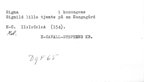 //// Signa i konungens //// Signild lilla tjente på en Kungagård //// H-C. IIsIsCslsA (154). //// H-CAVALL-STBPHEIS KB. ////