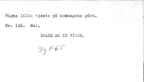 //// ¦ //// Signa lilla tjente på konungens gård» //// Nr. 146» Mel» //// -j //// DRAKE MS KB VI30R. ////