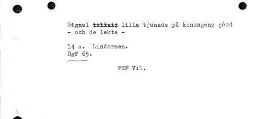//// ¦ ¦ m //// Signel i±±±x±t lilla tjänade på konungens gård - och de lekte - //// 14 Lindormen. DgF 65. //// F //// PSF Vsl. //// V. y ////