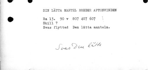 //// SIN LÄTTA MANTEL BREDER AFTONVINDEN //// (fe; Ra 13. 90 v 807 407 607 t //// Skill ? //// Svas flyttad Den lätta manteln. //// * //// « ////