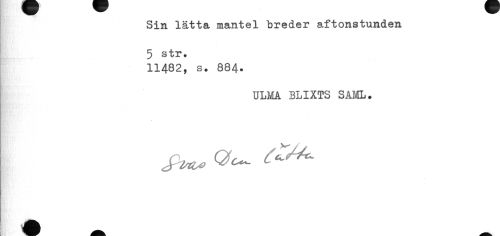//// Sin lätta mantel breder aftonstunden 5 str. //// 11482, s. 884. //// ULMA BLIXTS SAML. //// Ve- ^ ////