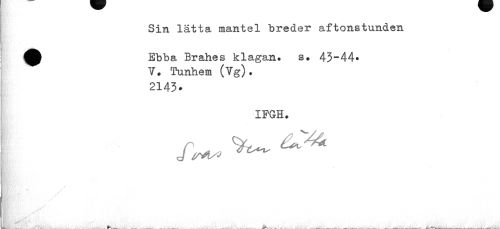 //// Sin lätta mantel breder aftonstunden //// Ebba Brahes klagan. s» V. Tunhem (Vg). //// 2143. //// IFGH. //// f*. //// /* //// ' / //// / //// - //// , » //// yt > ^ ¦'• //// Mt -• ////