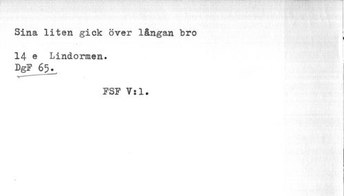 //// Sina liten gick över långan "bro //// \ //// 14 e Lindormen. //// DgF 65^ //// FSF 7:1. //// ¦ //// i //// i ! //// m i //// 1 ////
