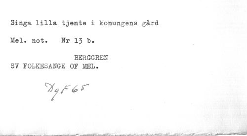 //// Singa lilla tjente i konungens gård Mel. not. Nr 13 b. //// BERGGREN SV FOLKESANGE OF MEL. ////